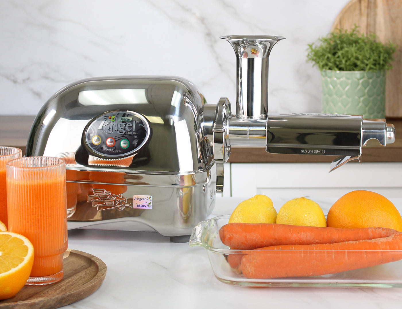 With Angel's excellent performance to separate the juice from its pulp—it is virtually pulp-free. With Angel, you can juice almost all kinds of vegetables and fruits. The possibilities are endless with Angel.